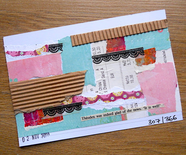 ReplyDelete302 reminds me of Christmas with it's scalloped collage and the shanty shutter look given from the corrugated cardboard in 303 is awesome but my eyes are very much drawn to 304 with it's pops of orange big kisses and sweet words. Always hard to choose a favourite.. but that big teabag moon is fab! Hugs Tracey xx