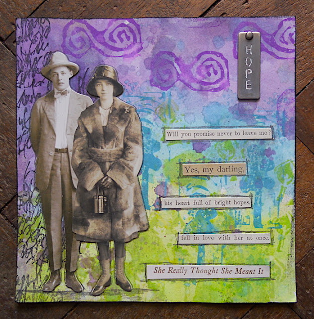 And on 7th Feb (Day 38), Cheiron Brandon showed us how to create a background, and make up a story with Tim Holtz Paper Dolls and story stickers. I'm linking my page to Valerie's Heavy Metal theme at Art Journal Journey.